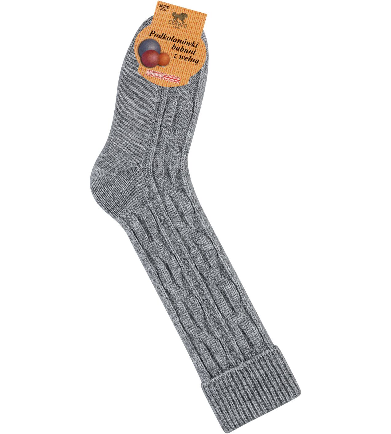 Skarpetki z Wełną - podkolanówki - średni szary melanż